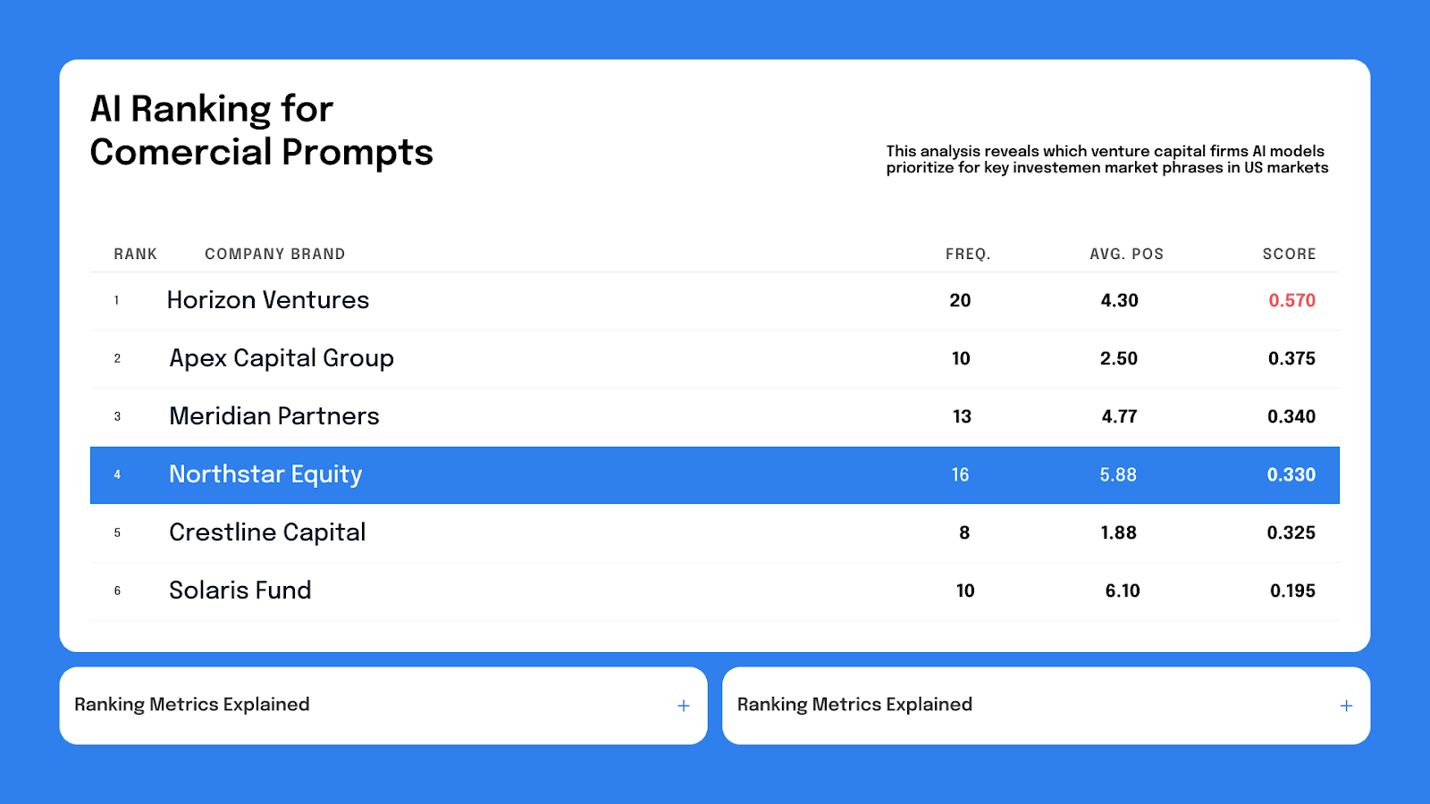Want to see how your brand ranks across high-intent AI prompts and how that compares to your competitors? Contact us, and we’ll show you.